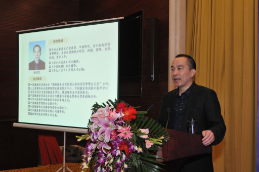健康服务业岗位能力提升培训项目管理办公室主任孙昌杰从健康中国产业机遇、健康中国培训机遇、职业培训发展趋势及国家培训师范项目四方面为中国健康服务业岗位能力提升培训项目做具体介绍。