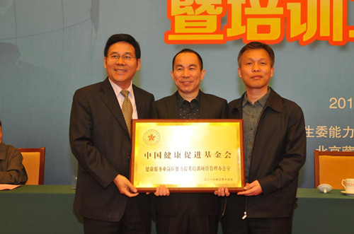 会上,国家卫生计生委能力建设和继续教育中心主任杨爱平与中国健康促进基金会副理事长兼秘书长常映明共同为该办公室授牌!
