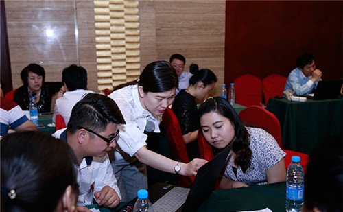 王丽娜在“中国健康服务业岗位能力提升培训项目规范化培训”工作会上,为学员讲解大健康服务业在线学习平台账户注册及使用与演练方法,学员们积极回应,纷纷针对自己的问题进行提问。