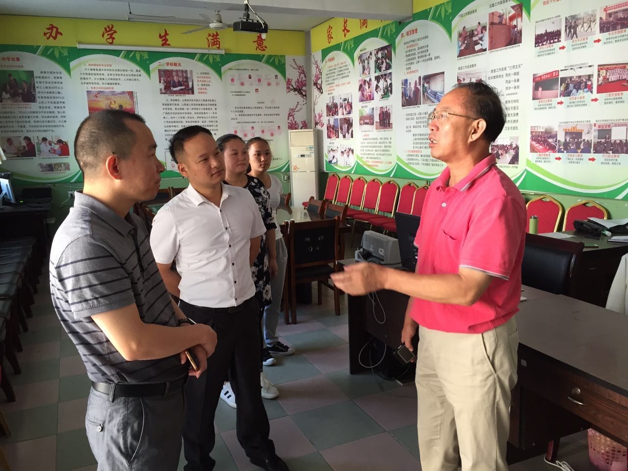 山西省河东中医少儿推拿学校校长孙德仁为中国健康服务业岗位能力提升培训项目管理办公室主任孙昌杰、副主任刘广超、刘峰介绍学校的办学理念、文化特色、突出贡献、发展成果。